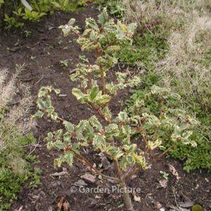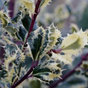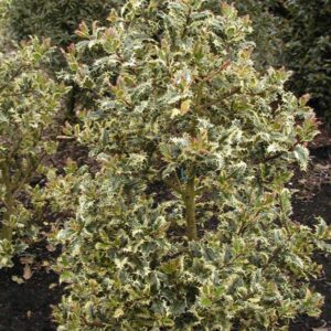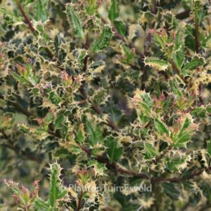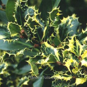 very slow growing hedgehog-holly with white leaf edge. The size after 10 years is 100 cm. The leaf colour is white-variegated. This plant is completely hardy. Recommended quantity per square meter : 2. Common name : Holly tree . This plant has received the following award: AGM, Award of Garden Merit, 1993. . Is present in the plant shop. Please check actual availability in the current stocklist.