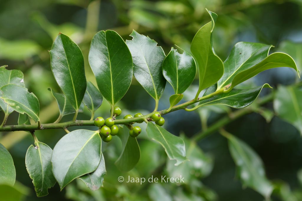 common sharp holly. The size after 10 years is 500 cm. The berry colour is red. The berry period is October – November. This plant is completely hardy. Common name : Holly tree Possible alternative : Ilex aquifolium ‘Alaska’. Main difference: Ilex aquifolium ‘Alaska’ good selection for hedges. This plant has received the following award: AGM, Award of Garden Merit, 1993. . Only available when ordered in advance.