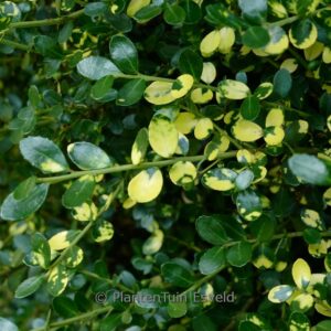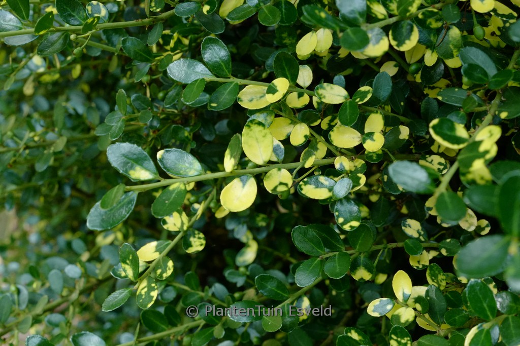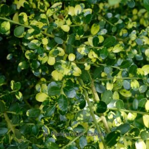 Japanese holly suited for Japanese garden. The size after 10 years is 150 cm. The leaf colour is green with yellow spikkels. This plant is hardy. Common name : Holly . . Is present in the plant shop. Please check actual availability in the current stocklist.