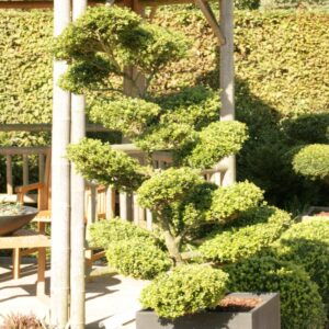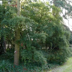 thornless Japanese holly in Japan popular to form shapes. The size after 10 years is 250 cm. The berry colour is black. The berry period is September – October. This plant is completely hardy. Recommended quantity per square meter : 3. Common name : Holly . . Only available when ordered in advance.