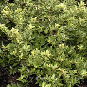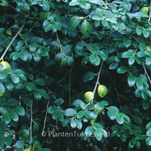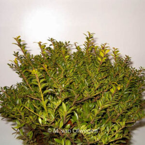 Chinese thee-hulst, leaves suited as thee,weinig spines. The size after 10 years is 250 cm. The berry colour is red. The flowering period is May. This plant is hardy. Common name : Holly . . Only available when ordered in advance.