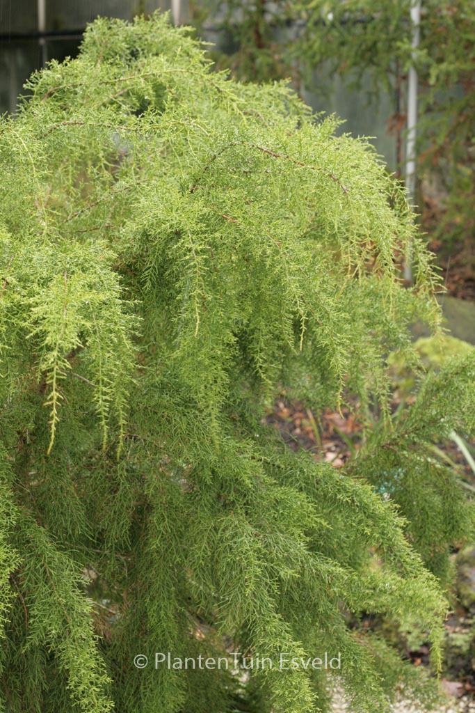 rare Tasmanian species protect well in winter. The size after 10 years is 100 cm. The needle colour is green. This plant is not hardy. Recommended quantity per square meter : 1. . . Is present in the plant shop. Please check actual availability in the current stocklist.