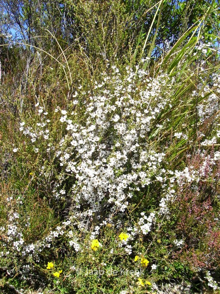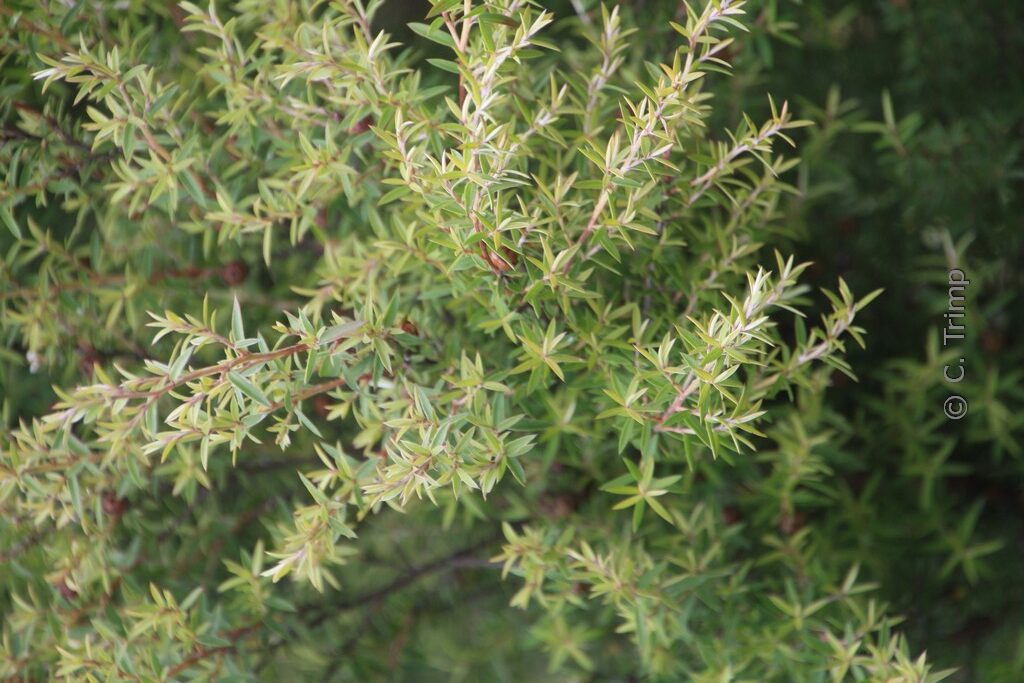 New Zwaland Tea Tree; requires a moist but well-drained. This plant grows to about 1,5 m. The flower colour is white or pink or red. The flowering period is May – June. This plant is not hardy. Recommended quantity per square meter : 1. spot in poor soil. Aromatic (when crushed) leaves which can be used as a very bitter tea . . Only available when ordered in advance.