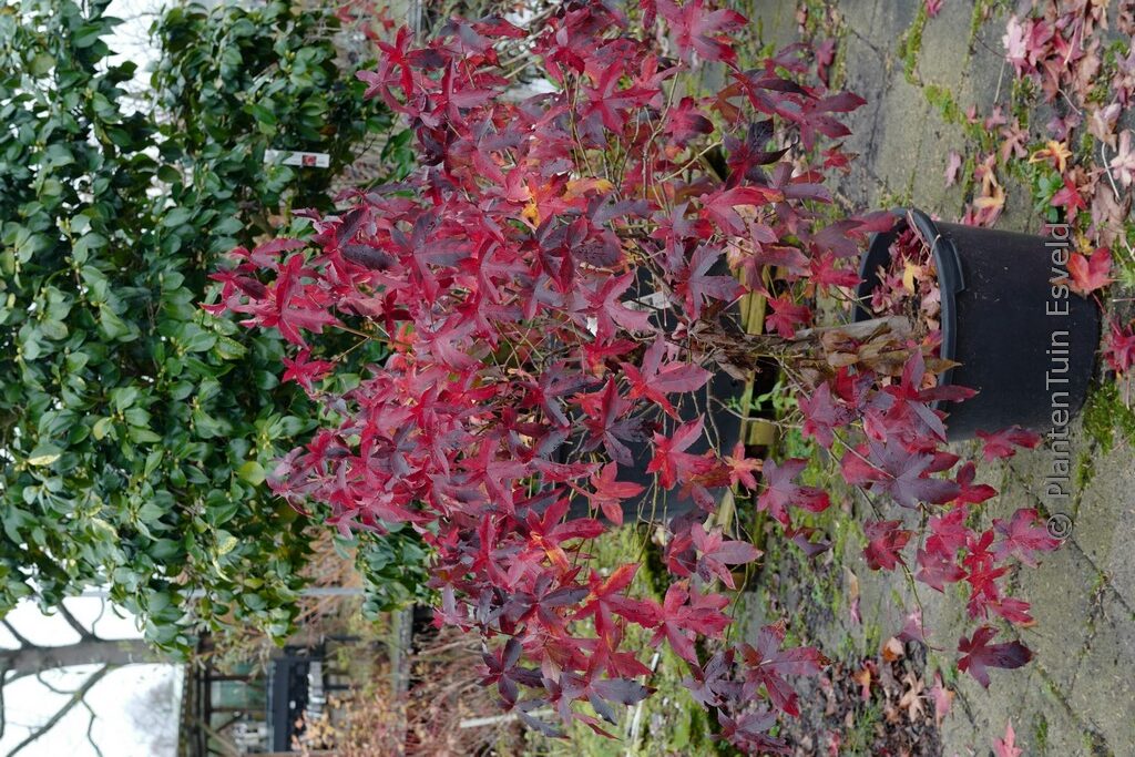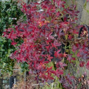 dwarf Liquidambar forms a rounded shrub. The size after 10 years is 250 cm. The flowering period is April – May. This plant is completely hardy. Recommended quantity per square meter : 1. Common name : Bilsted Also available in larger sizes, prices on demand. . . Is present in the plant shop. Please check actual availability in the current stocklist. . . .