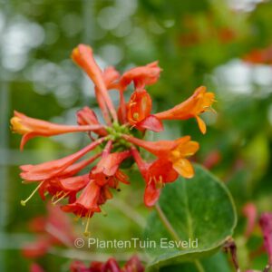 fast growing lonicera hardly scented, showy flower. The size after 10 years is 4 m. The flower colour is reddish orange. The flowering period is June – September. This plant is completely hardy. Recommended quantity per square meter : 1. Common name : Honeysuckle . . Is present in the plant shop. Please check actual availability in the current stocklist. . . . . .