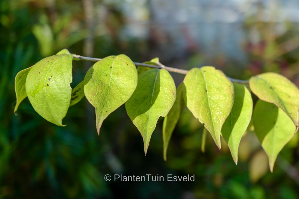Shrub from China; berries purple-red or white. This plant grows to about 3 meter. The flower colour is variable (white, pink or red). The flowering period is May. This plant is hardy. Recommended quantity per square meter : 1. Common name : Honeysuckle . . Is present in the plant shop. Please check actual availability in the current stocklist.