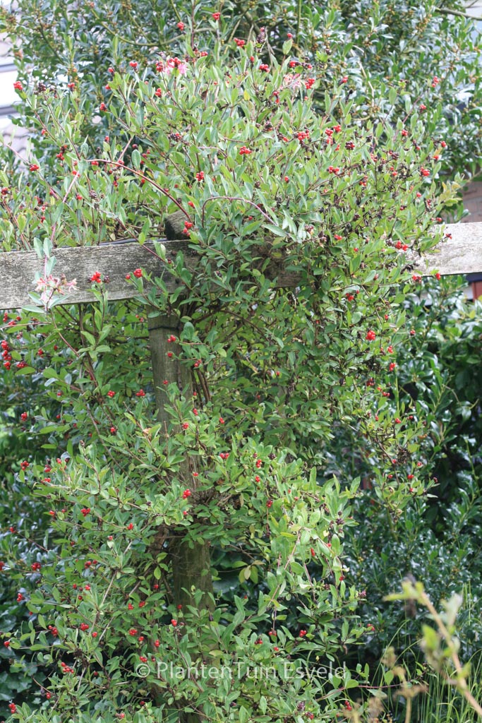 wild lonicera, purple fragrant flowers, quick growth. The size after 10 years is 5 m. The flower colour is purple/yellow. The flowering period is May – August. This plant is completely hardy. Recommended quantity per square meter : 1. Common name : Honeysuckle Possible alternative : Lonicera periclymenum. Main difference: Lonicera periclymenum ‘Serotina’ redder flowers. This plant has received the following award: AGM, Award of Garden Merit, 1993. . Only available when ordered in advance.