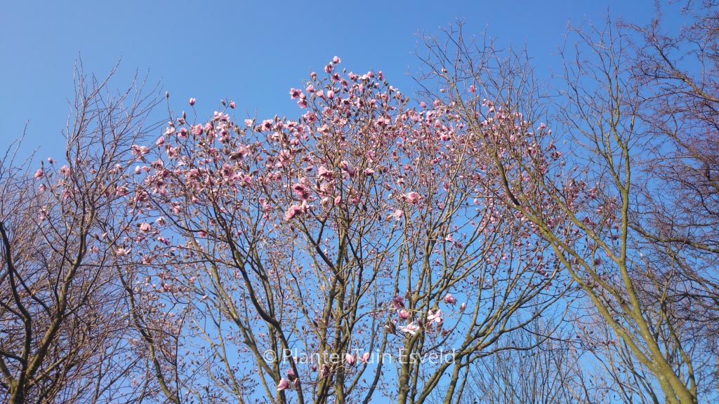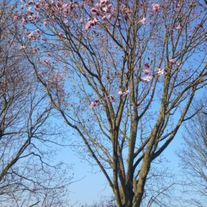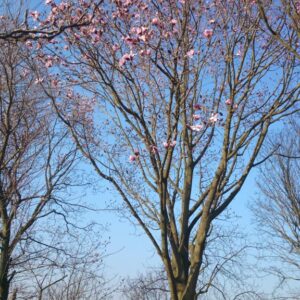 wide shrubby species very robust character. The size after 10 years is 5 meter. The flower colour is white with a vleugje pink. The flowering period is March – April. This plant is hardy. Common name : Magnolia . . Only available when ordered in advance.
