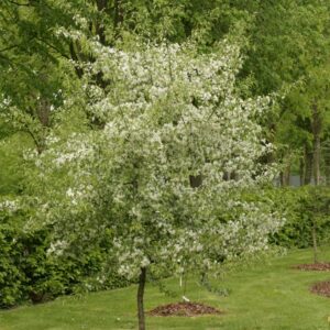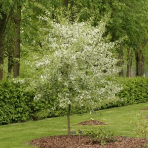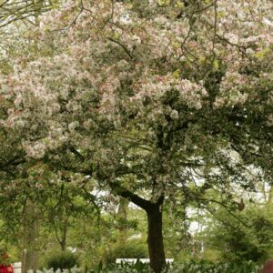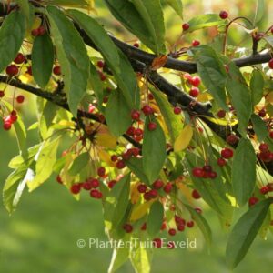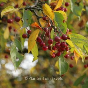 ornamental apple rich fruiting species. The size after 10 years is 4 meter. The fruit colour is redbrown. The fruit period is September. This plant is hardy. Common name : Apple . . Only available when ordered in advance.