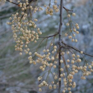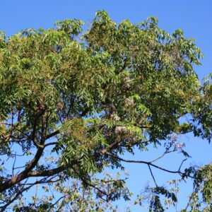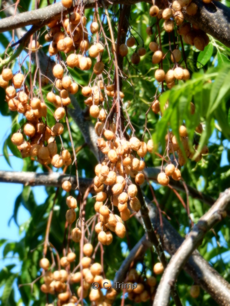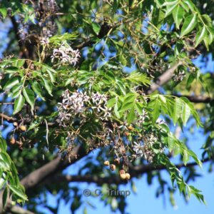 mediterranian small tree. The size after 10 years is 5 m. The flower colour is white. The berry period is October – December. This plant is not hardy. Common name : Chinaberry . . Only available when ordered in advance.