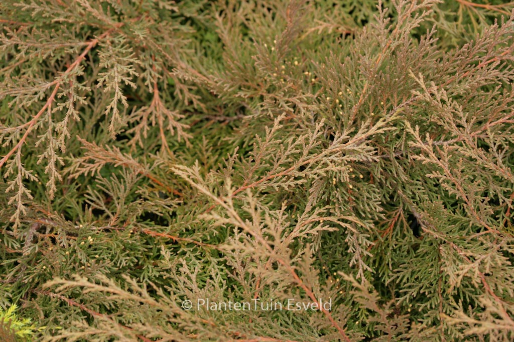 groundcover conifer bronze brown in winter. The size after 10 years is 50 cm. The leaf colour is green. This plant is completely hardy. Recommended quantity per square meter : 2. . This plant has received the following award: AGM, Award of Garden Merit, 1993. . Is present in the plant shop. Please check actual availability in the current stocklist.