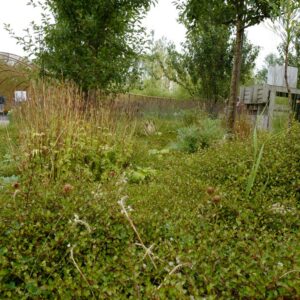 creeping shrub. The size after 10 years is 30 cm. The flower colour is greenish. This plant is hardy. Recommended quantity per square meter : 3. . . Only available when ordered in advance.