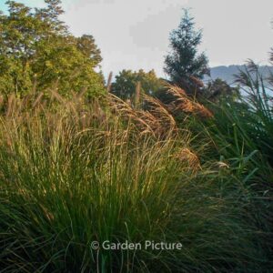ornamental grass. The average size is 100 cm. The flower colour is brownish. This plant is completely hardy. Recommended quantity per square meter : 5. . . Only available when ordered in advance.