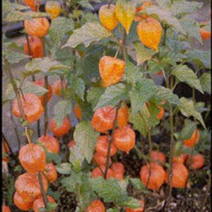 lampionplantje with orange. The average size is 50 cm. The flower colour is white,. The flowering period is June – July. This plant is hardy. Recommended quantity per square meter : 5. . . Only available when ordered in advance.