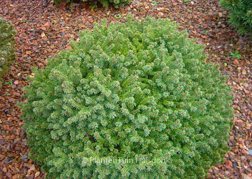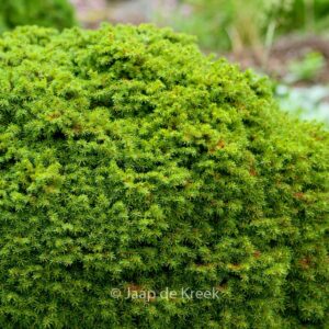 dwarf fir, rock garden. The size after 10 years is 25 cm. The needle colour is light green. This plant is completely hardy. Common name : Norway spruce . This plant has received the following award: AGM, Award of Garden Merit, 1993, also Award of Merit First Class by the Royal Society for Boskoop Cultures 1967. . Only available when ordered in advance.