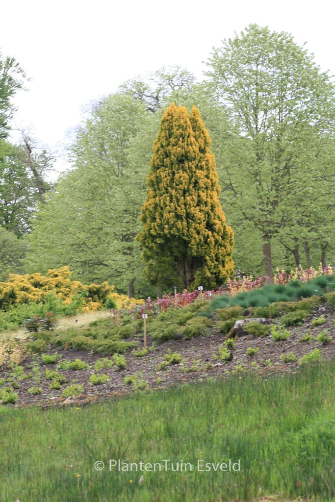 Upright species with bright yellow colour. The size after 10 years is 3 meter. The leaf colour is yellow. This plant is hardy. . . Only available when ordered in advance.