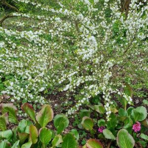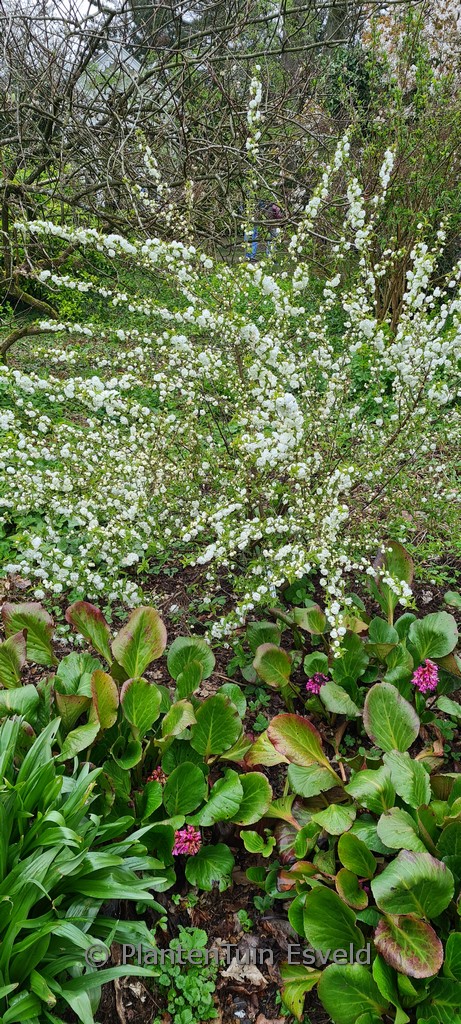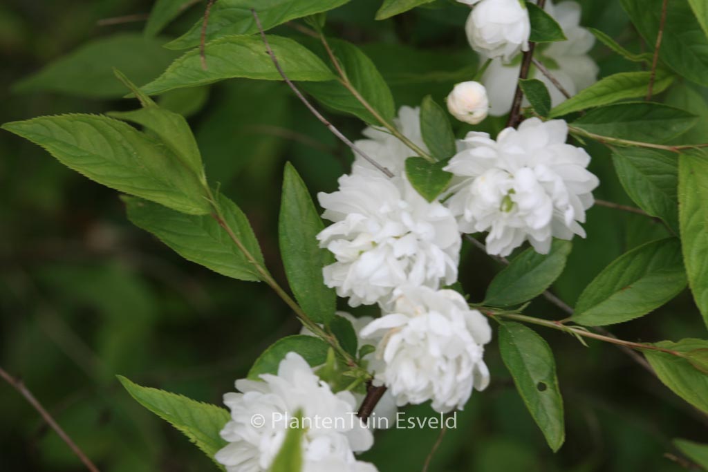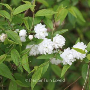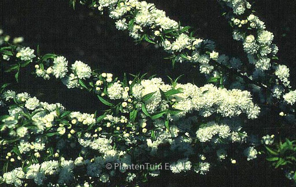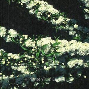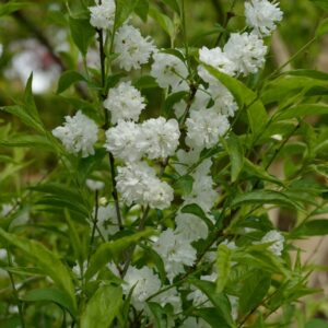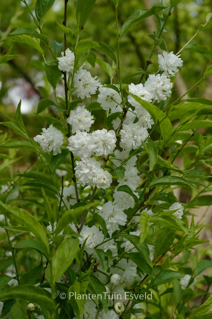 white almond very rich flowering. The size after 10 years is 250 cm. The flower colour is double white. The flowering period is May. This plant is completely hardy. Recommended quantity per square meter : 1. Common name : Chinese bush cherry . . Only available when ordered in advance.