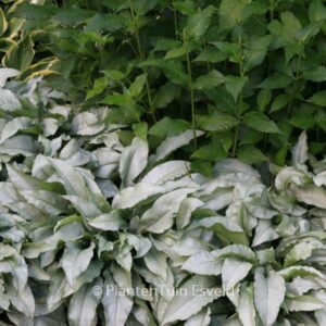 with distinct greygreen decorative leaves. This plant grows to about 30 cm. The flower colour is blue and pink. The flowering period is March – April. This plant is hardy. Recommended quantity per square meter : 7. . . Is present in the plant shop. Please check actual availability in the current stocklist.