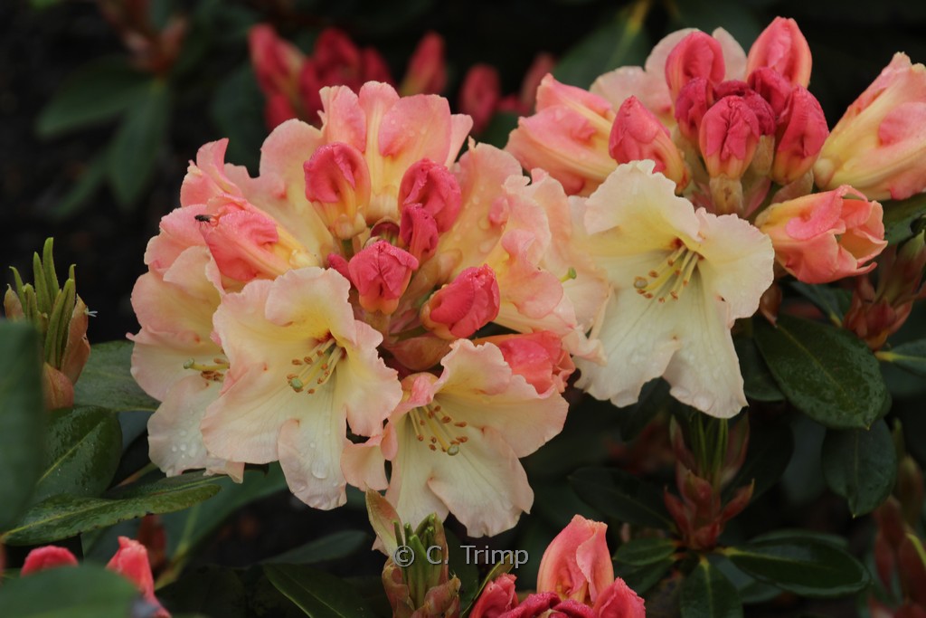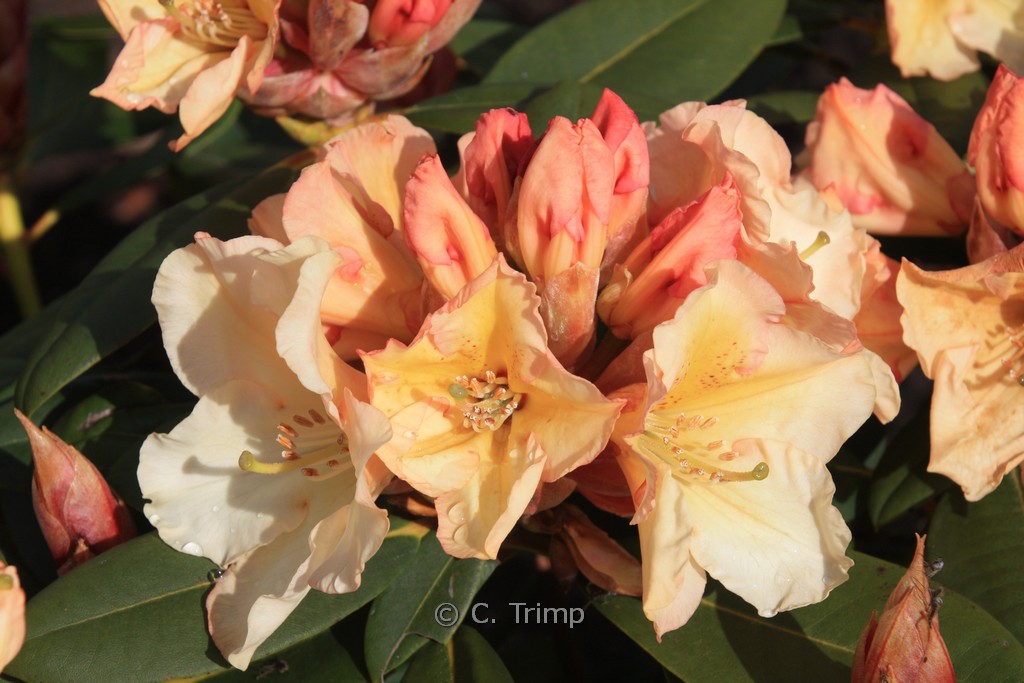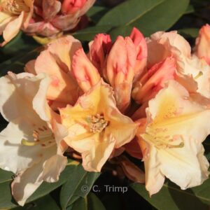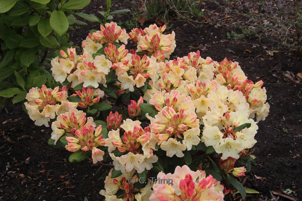Rosy-red in bud; large yellow flowers with pale-pink tinge. This plant grows to about 1,5 m. The flower colour is light yellow. The flowering period is May. This plant is hardy. . This plant has received the following award: AGM, Award of Garden Merit, 2002. . Only available when ordered in advance.