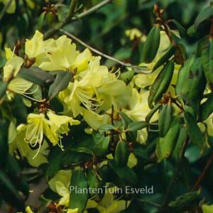 upright growing rhododendr elegant bamboo-like image. The size after 10 years is 250 cm. The flower colour is yellow. The flowering period is May. This plant is hardy. . This plant has received the following award: AGM, Award of Garden Merit, 1993. . Is present in the plant shop. Please check actual availability in the current stocklist.
