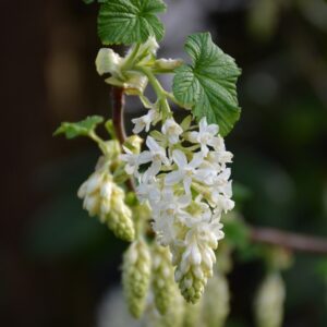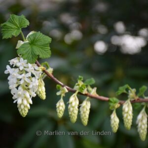 spring flowering shrub with bright green leaves. The size after 10 years is 200 cm. The flower colour is white. The flowering period is April. This plant is hardy. Recommended quantity per square meter : 2. Common name : Winter currant . This plant has received the following award: AGM, Award of Garden Merit, 2002. . Only available when ordered in advance.