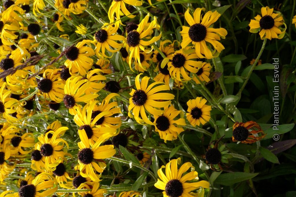 Low sunhat with healthy leaves; rich and long flowering. This plant grows to about 40 cm. The flower colour is yellow with a black eye. The flowering period is July – October. This plant is hardy. Recommended quantity per square meter : 7. . . Only available when ordered in advance.