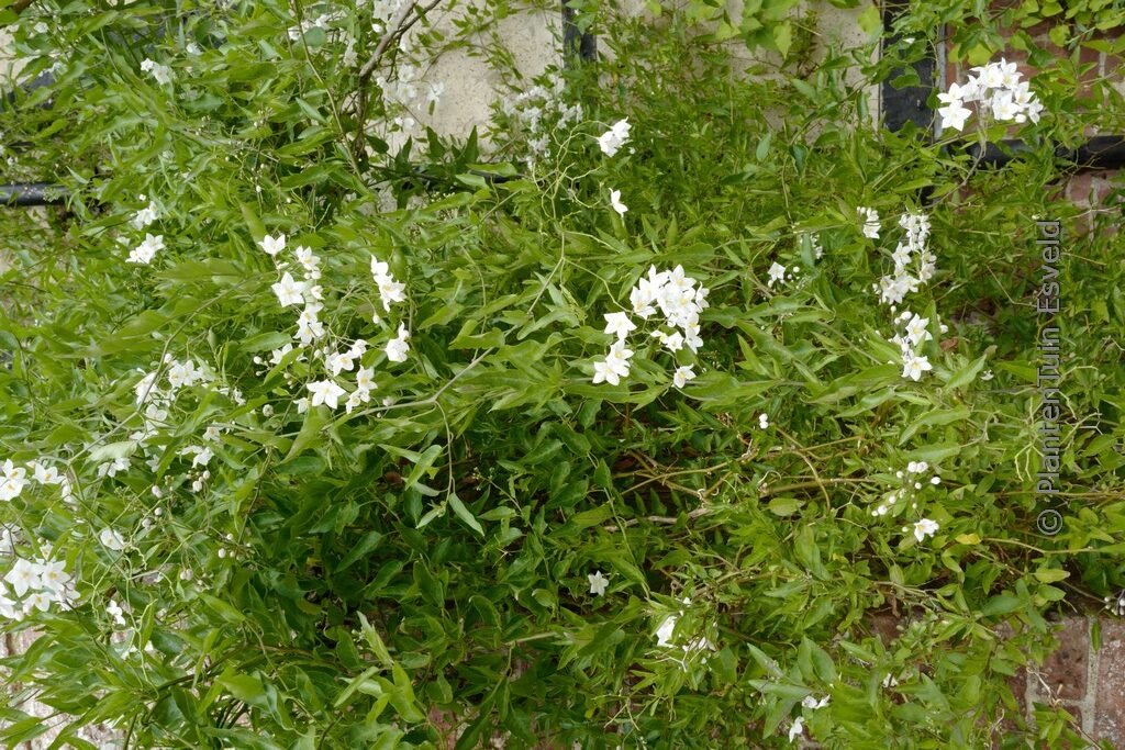 slow growing climber with white flowers. The size after 10 years is 250 cm. The flower colour is white. The flowering period is July – September. This plant is mostly hardy. Recommended quantity per square meter : 1. . . Is present in the plant shop. Please check actual availability in the current stocklist.