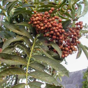 Himalaya rowan with good autumn colour. The size after 10 years is 6 meter. The berry colour is white. The flowering period is May. This plant is hardy. . . Only available when ordered in advance.