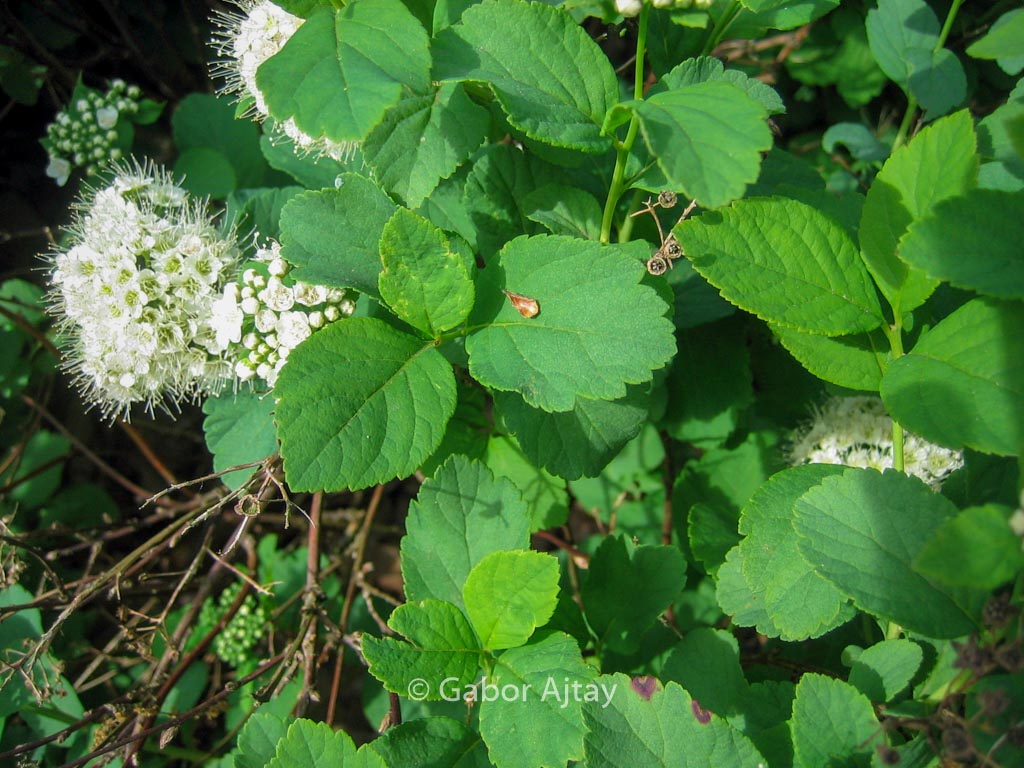 low densely branched muscl shrub. The size after 10 years is 75 cm. The flower colour is white. The flowering period is June. This plant is completely hardy. Common name : Spirea . . Only available when ordered in advance.