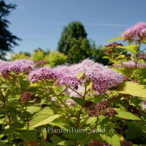 yellow-leaved Spiraea with distinct large flowers. This plant grows to about 100 cm. The flower colour is pink. The flowering period is June – September. This plant is hardy. Recommended quantity per square meter : 3. Common name : Spirea . This plant has received the following award: Award of Merit by the Royal Society for Boskoop Cultures 2020. . Is present in the plant shop. Please check actual availability in the current stocklist. This plant has received the following award: Award of Merit by the Royal Society for Boskoop Cultures 2020. .