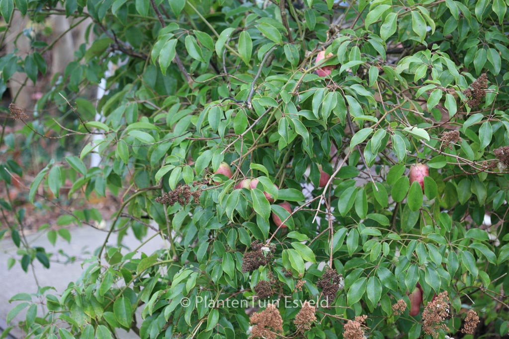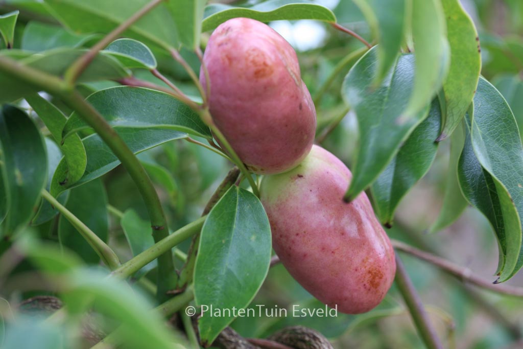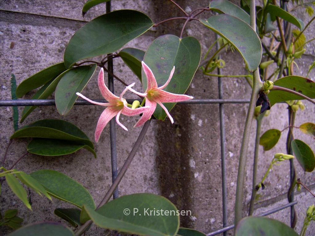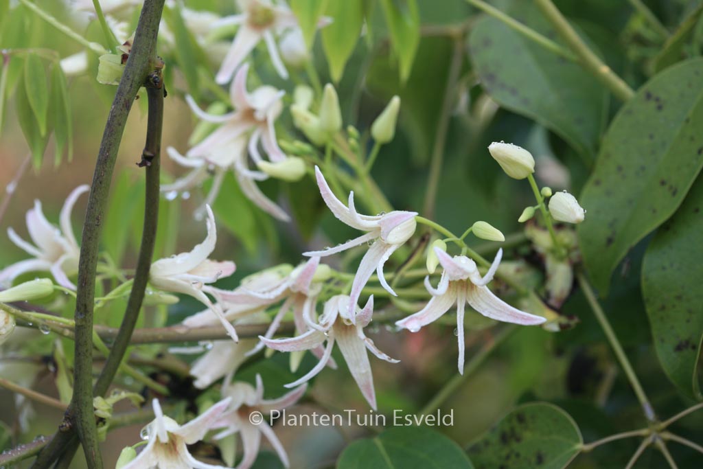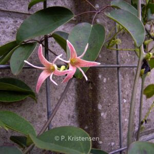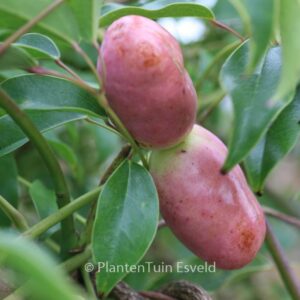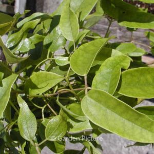 evergreen climber with purple ‘potato fruits’. The size after 10 years is 250 cm. The flower colour is cream. The flowering period is April – May. This plant is mostly hardy. Recommended quantity per square meter : 1. . . Only available when ordered in advance.