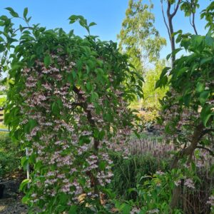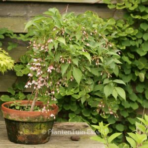pendulous of the pink Japanese Styrax tree. The size after 10 years is 100 cm. The flower colour is pink. The flowering period is May – June. This plant is hardy. Common name : Snowbell tree . . Is present in the plant shop. Please check actual availability in the current stocklist.
