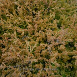 cone shaped semi-dwarf distinct winter colour. The size after 10 years is 200 cm. The leaf colour is yellow, orange yellow in winte. This plant is completely hardy. Recommended quantity per square meter : 1. . This plant has received the following award: AGM, Award of Garden Merit, 1993. . Only available when ordered in advance.