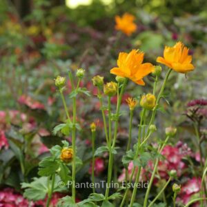 Globeflower, the name refers to the globular flowerhead. The average size is 75 cm. The flower colour is golden. The flowering period is May – June. This plant is hardy. Recommended quantity per square meter : 7. . This plant has received the following award: AGM, Award of Garden Merit, 1993. . Only available when ordered in advance.