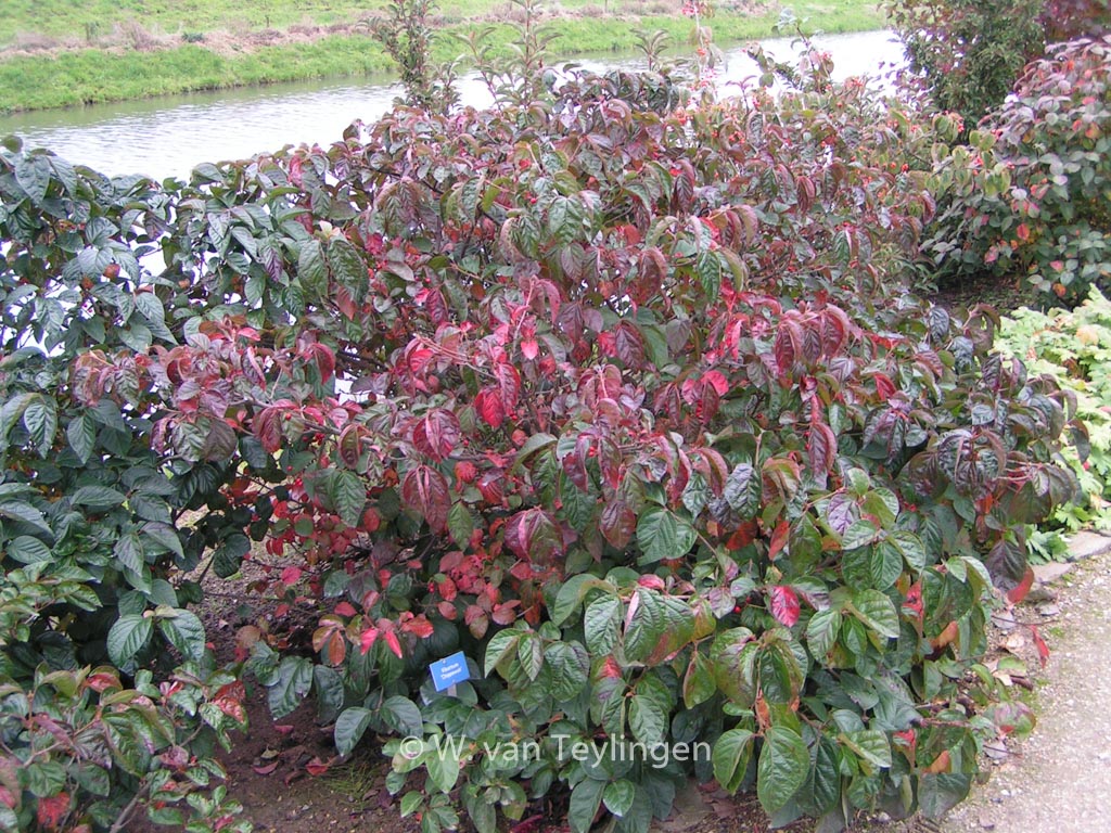 deciduous white lace-cap, red berries. The size after 10 years is 100 cm. The flower colour is white. The flowering period is June. This plant is completely hardy. Common name : Snowball . . Only available when ordered in advance.